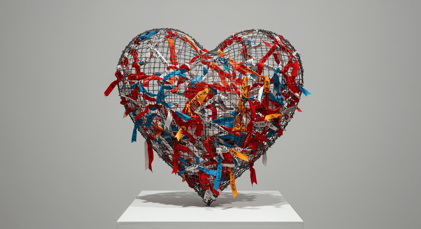 LA VISION L'œuvre est volontairement inachevée. Le don initial du studio prend ici tout son sens : l'artiste offre la fondation, un cœur en grillage vide, mais refuse de la compléter seul. Par un "déplacement du créateur", c'est le public qui lui donne vie. En attachant un ruban à la structure, chaque participant laisse une trace et rappelle un message fort : chaque geste compte, chaque présence a un impact, on ne grandit jamais seul. Jamais figé, ce cœur évolue à l’image du parcours des jeunes.