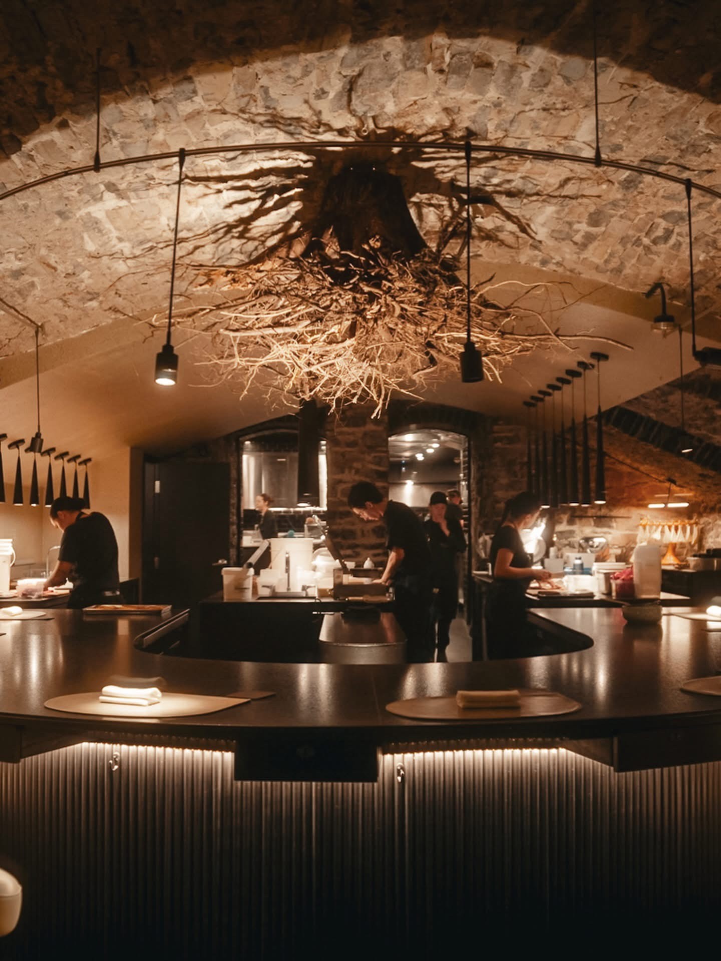 Inspirée par le comptoir-chef, où l’on observe le travail normalement dissimulé de la cuisine, l’œuvre met en lumière ce qui nourrit en silence. Comme les racines puisent leur force dans le sol, les chefs extraient l’essence des ingrédients pour nourrir le corps et l’âme.