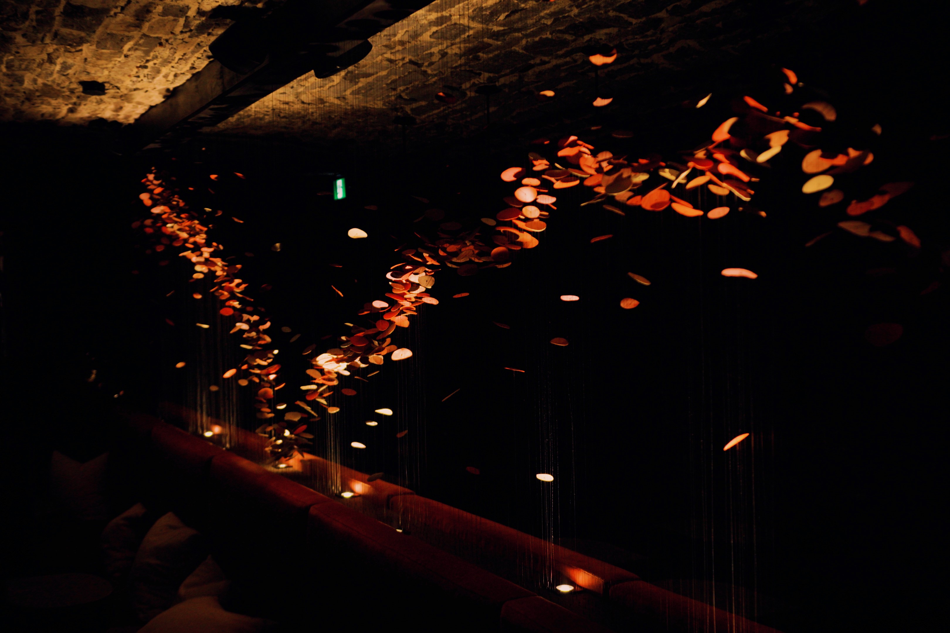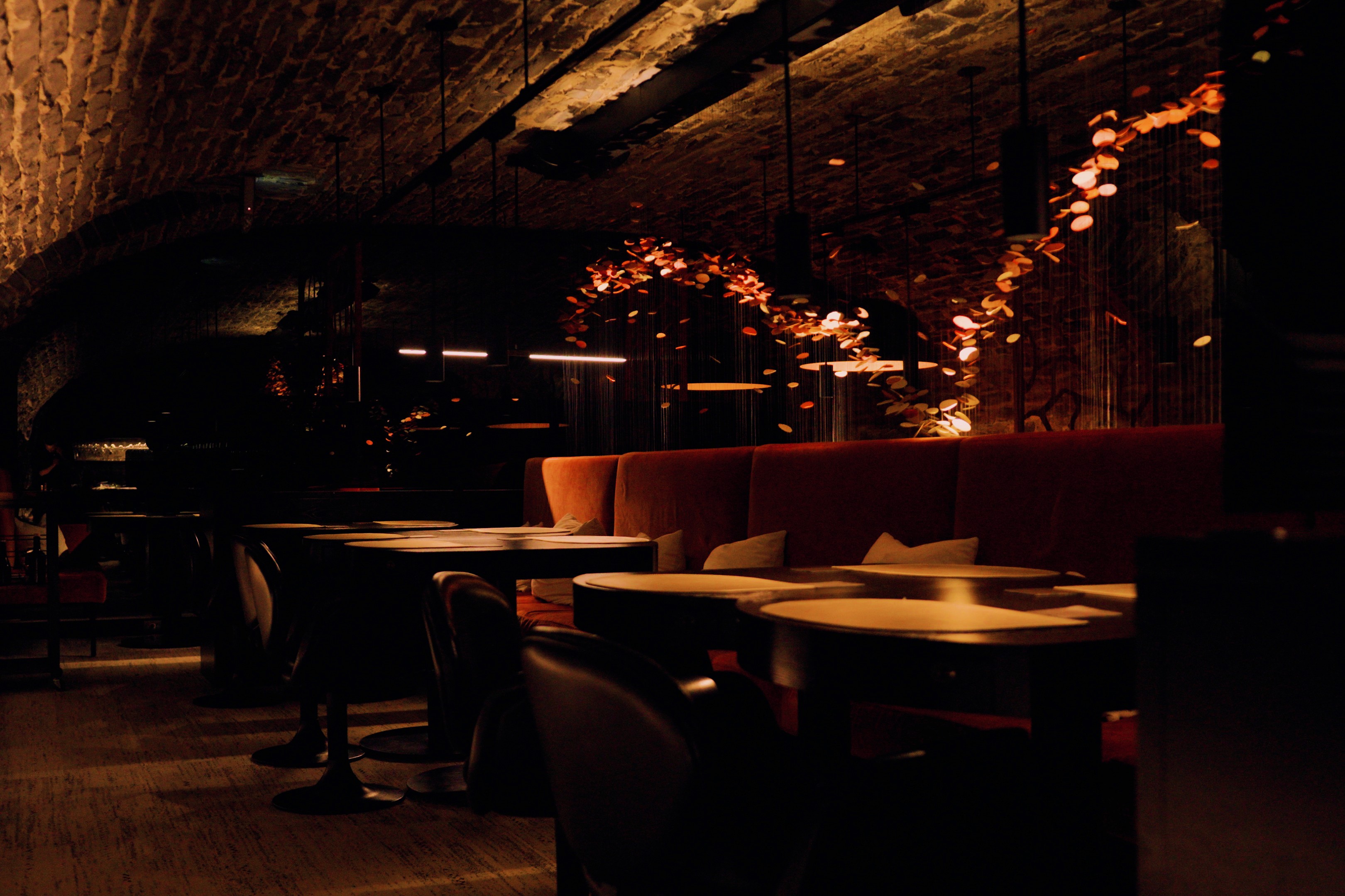 Commandée pour la salle à manger principale du restaurant doublement étoilé Michelin La Tanière, cette œuvre monumentale devait prendre place au cœur d’une voûte de pierre, véritable colonne vertébrale du lieu.