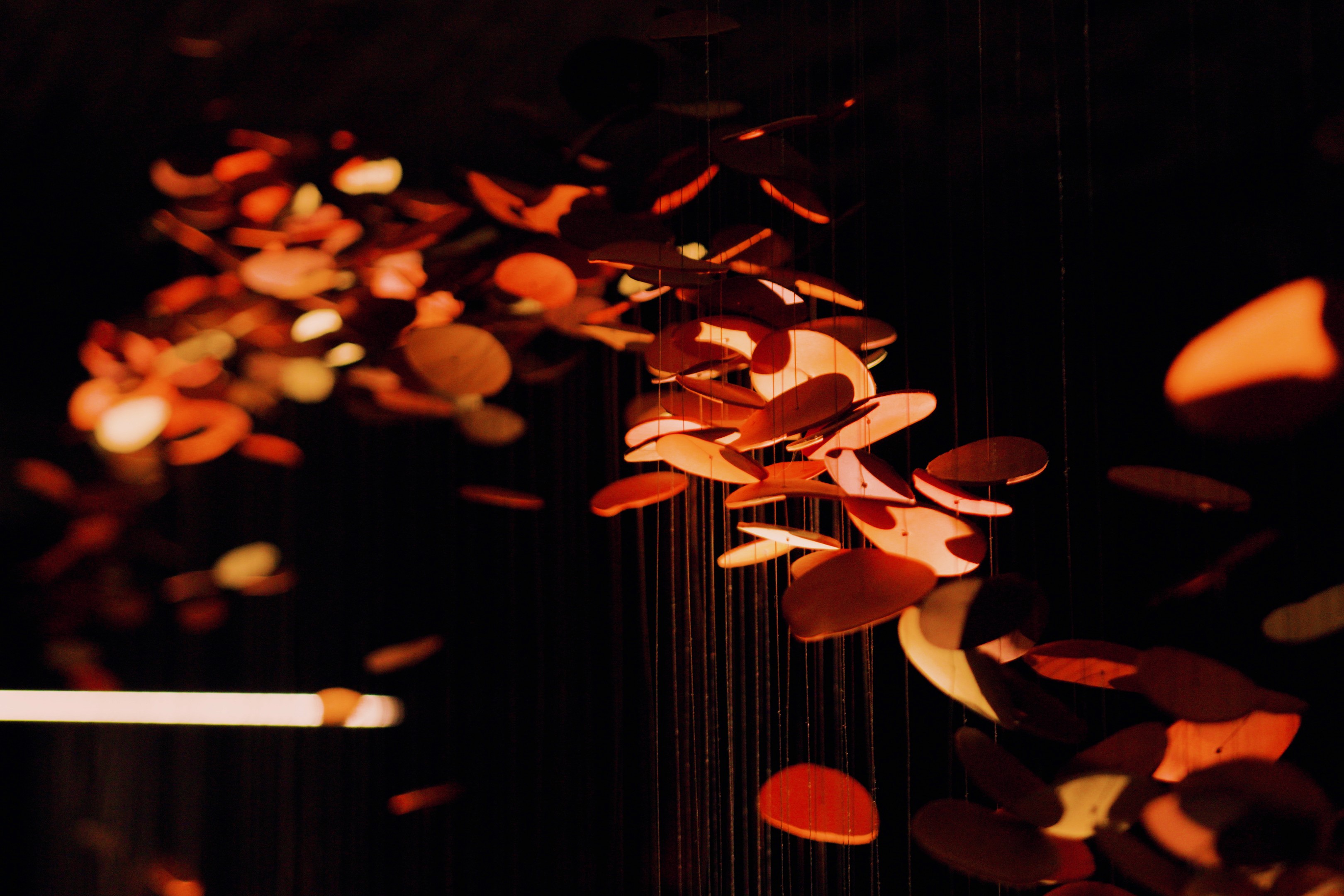 LE SAVOIR-FAIRE L’installation est composée de 1200 éléments de porcelaine, sculptés et façonnés à la main, puis suspendus par de fins câbles d’acier sur plus de vingt pieds de longueur.